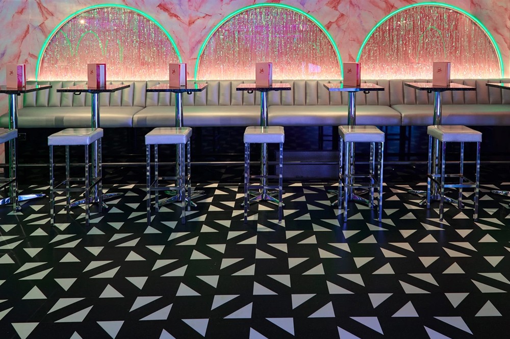 For the flooring, Finch Interiors chose Glint Void and Glint Orb, two sparkling abstracts from Amtico’s Signature Collection. The Luxury Vinyl Tiles (LVT) have been used in an eye-catching Woven Designers’ Choice laying pattern, which adds a new dynamic to their already attention-grabbing aesthetic.