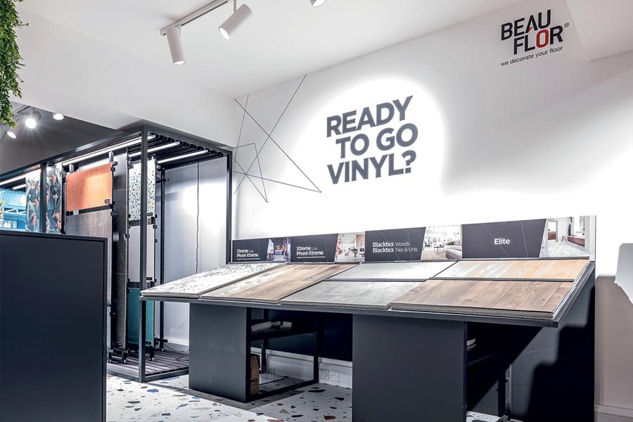 The showroom is also home to Beauflor Pro, the brand’s collection of commercial vinyl floors available from stock. Continues the company: ‘Beauflor Pro provides a core collection of 11 ranges with fast access to standard designs in multiple widths up to 4m. With natural wood, stone and architectural looks across specifications for commercial use, Beauflor Pro delivers high-quality vinyl flooring made in Europe’.