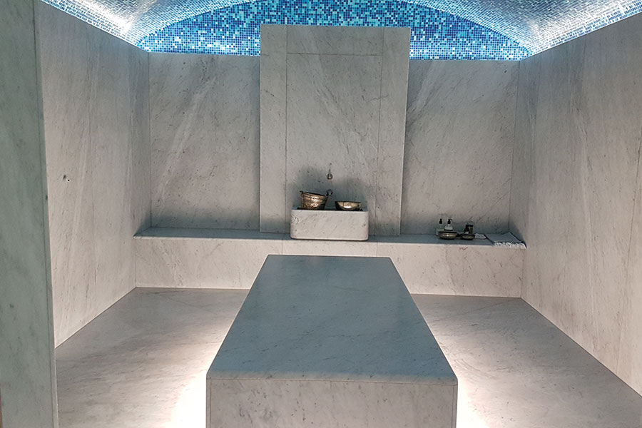 The company continues: ‘The system was used on benches and seats which were then clad with Carrara Marble, meaning there was a uniform look with the desired comfort element provided alongside it – resulting in the perfect spa experience for guests to enjoy.