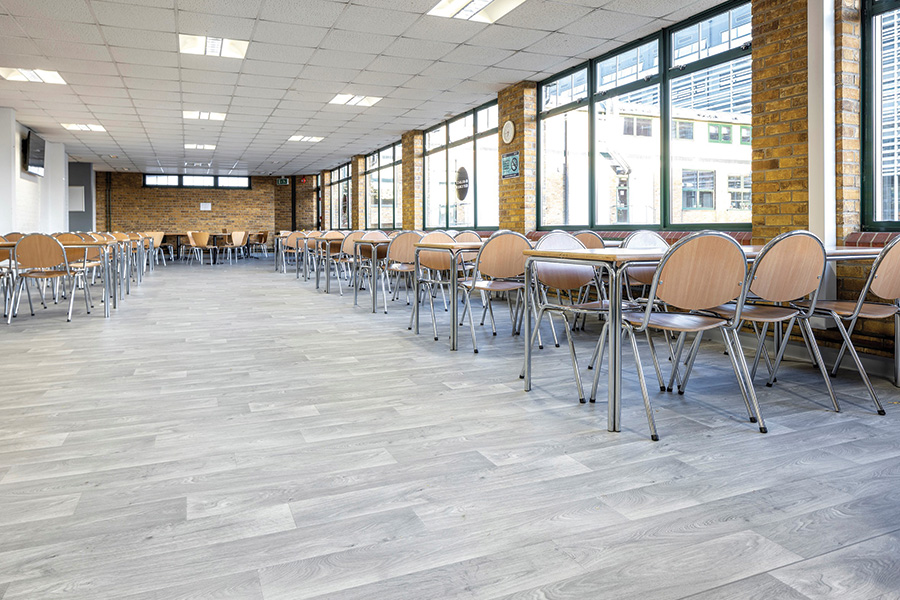 The canteen of the Colchester campus has recently been refurbished, with a floor finished in Iperform 70 heavy-duty vinyl flooring from IVC Commercial.