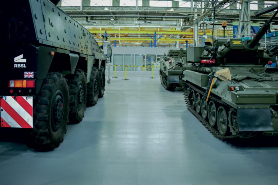 RBSL is a joint venture between BAE Systems and Rheinmetall providing military vehicle design, manufacture and support. The Warrington-based flooring firm installed 19,000sq m of its Stonclad GS epoxy mortar on the main production floors at the site in Telford.