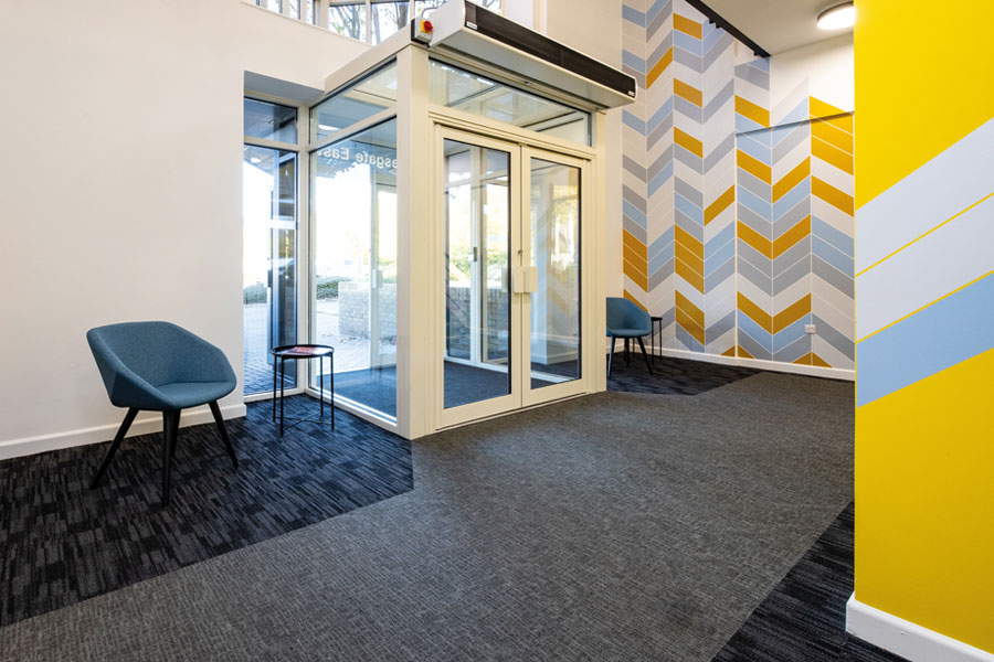 The flooring installer was RB Flooring and Rapid Select carpet tiles, part of Shaw Contract’s In Stock UK programme and made in the UK, were specified for this project. The flooring design features a combination of styles – Graph in colour Shadow, and Nook in colour Flint, which combine to create what’s described as a contemporary look.