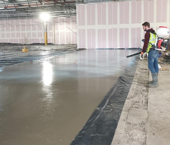 Cemfloor CT C30F6 was specified and over a period of just 2 – days; 3800m2 was installed by O’Neill Concrete Flooring Ltd with the screed being supplied by Robinson Concrete Ltd.