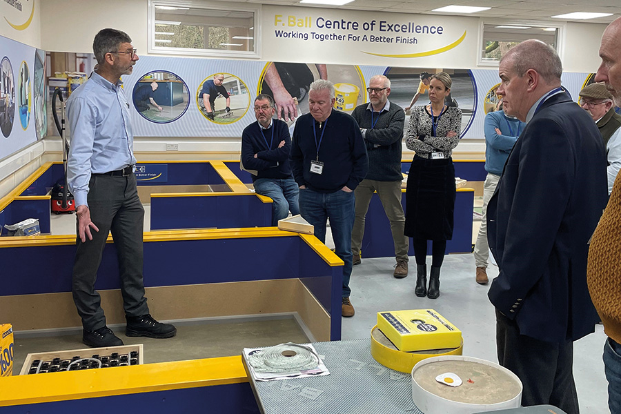 In February the CFA held a member event kindly hosted by F Ball & Co in Leek, Staffs. There was an update on all things CFA, including the launch of ‘Beyond Installation-Guidance on Underfloor Heating’, followed by a comprehensive update from F Ball on subfloor preparation and adhesive systems suitable for use with underfloor heating, with the theory presented by Steve Boulton (Technical Services Manager) and the practical demos of the systems provided by Tim Green (Head of Training), including best practice, looking at common issues, how to spot them and how to resolve them, and there were mock-up boards and displays of some of the main underfloor heating systems. Following the demos was a factory tour. Our thanks to F Ball & Co Ltd for hosting the event.
