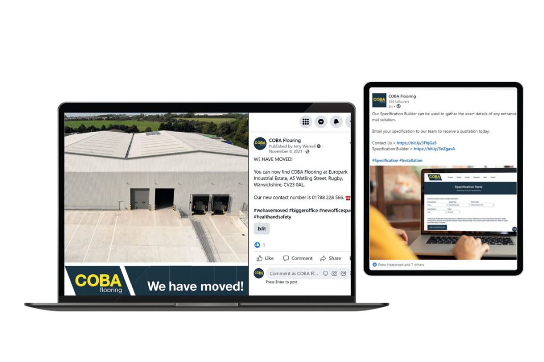 Facebook is another important channel that we use to promote our products and events at COBA Flooring.