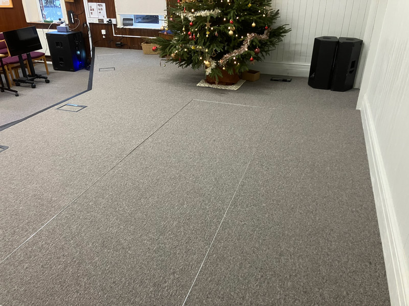 The project was completed with careful attention to detail, ensuring a perfect fit for the unique layout of the church. The resulting flooring not only enhances the space’s aesthetic but also improves comfort and safety for all users. Another satisfied client enjoying the DCTUK difference!