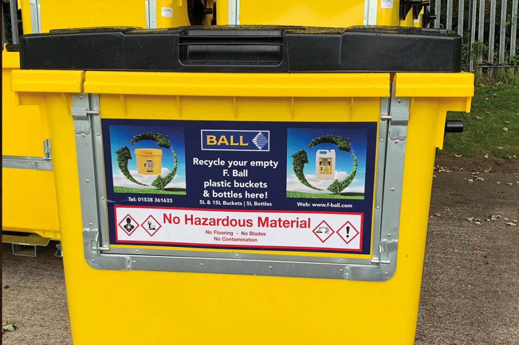 The amplified initiative will double the number of locations at distributor partners across the UK where contractors can effortlessly dispose of empty recyclable F Ball buckets and bottles in branded receptacles, for free.