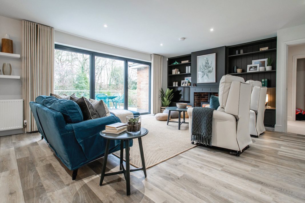 The home’s ground floor refurbishment consisted of an open plan kitchen-dining and lounge area, with a newly built single-story extension at the rear, housing two bedrooms, wet room, and a utility room for the family’s two wheelchair users.