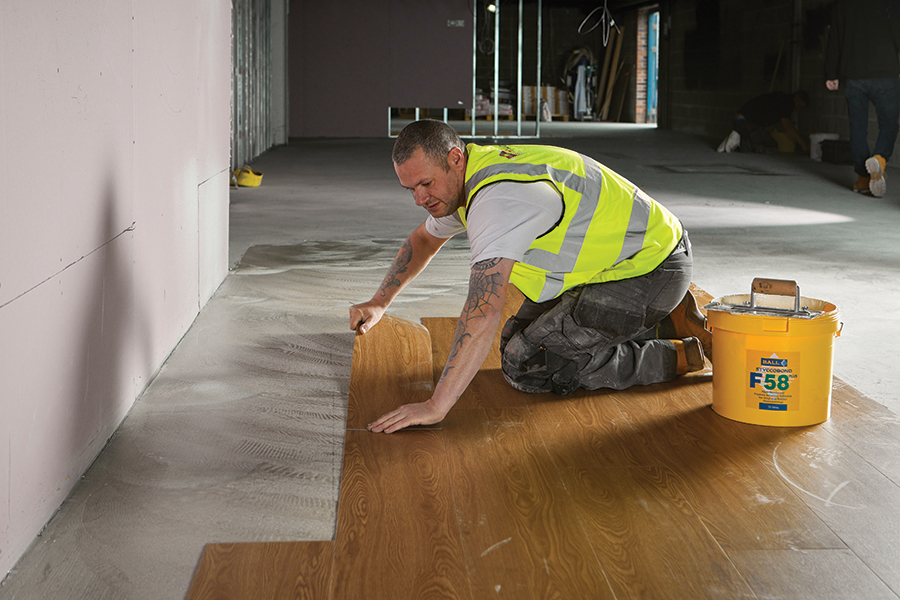Pressure sensitive adhesives, such as F. Ball’s Styccobond F46, are often the best choice for installing vinyl tiles or planks, says the company. They’re said to form an instant grab upon contact, so contractors don’t need to worry about tiles or planks moving about when they’re working, making them ideal for where intricate designs or patterns are being created.