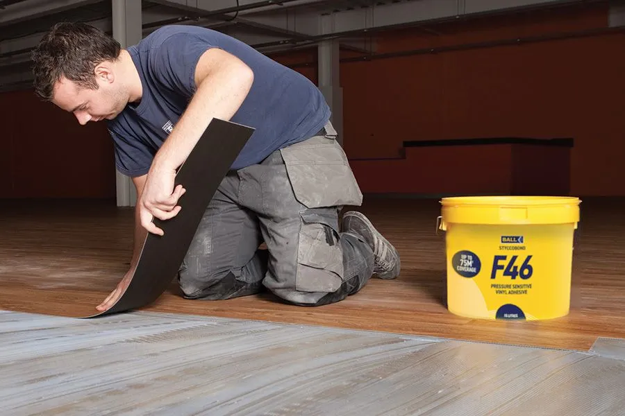 For example, F. Ball’s Styccobond F49 Hybrid PS is a water-based, pressure sensitive vinyl adhesive that develops the extremely high bond strength and dimensional stability required to hold vinyl floor coverings firmly in place in areas exposed to extreme temperature fluctuations (from -20°C to +60°C). Whilst providing high initial tack, the adhesive allows contractors to lift and reposition floor coverings in the initial stages of drying, making it a great choice for installing tiles and planks, intricate patterns and bespoke designs that need precise alignment. Styccobond F49 is also resistant to moisture, meaning it is suitable for use in areas subject to water and high humidity, including kitchens and bathrooms.