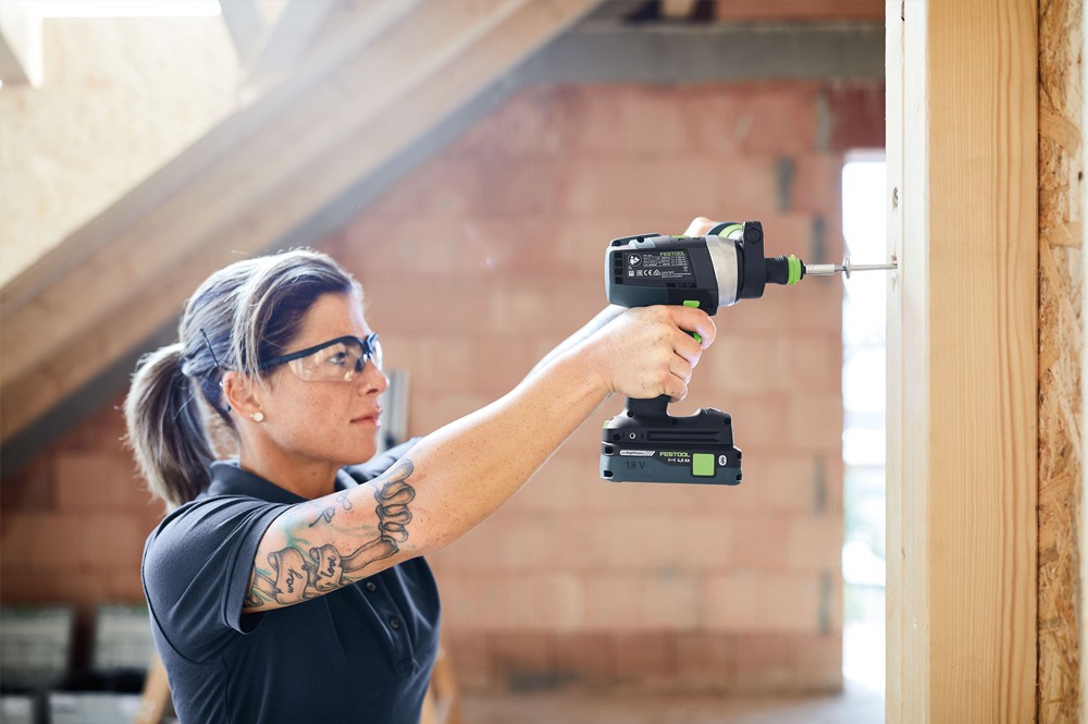 Those seeking a solution only for screwdriving – with optimum performance and endurance and no strength-sapping back torque – will benefit most from the TID 18 impact screwdriver. This tool enables screwdriving over long periods without tiring. Cordless impact screwdrivers are significantly lighter, more compact and enable working more comfortably – especially for repetitive screwdriving tasks. The essential feature here is the extremely low back torque, made possible by the tangential hammer mechanism which minimises impact on the wrist during screwdriving. Georg von dem Bussche, Festool trainer and master carpenter, explains: ‘The smart T-mode is an especially practical feature of the TID 18 cordless impact screwdriver. When fitting sheet metal to wood with self-tapping screws, the tool detects the transition between the different materials and automatically adapts the speed. To drill into the sheet metal as effectively as possible, the tool starts off driving in the screw with a high speed, low torque and without impact loading. Once the torque increases due to the commencing screwdriving process in the wood, the machine independently reduces the speed and only then begins impact loading.’