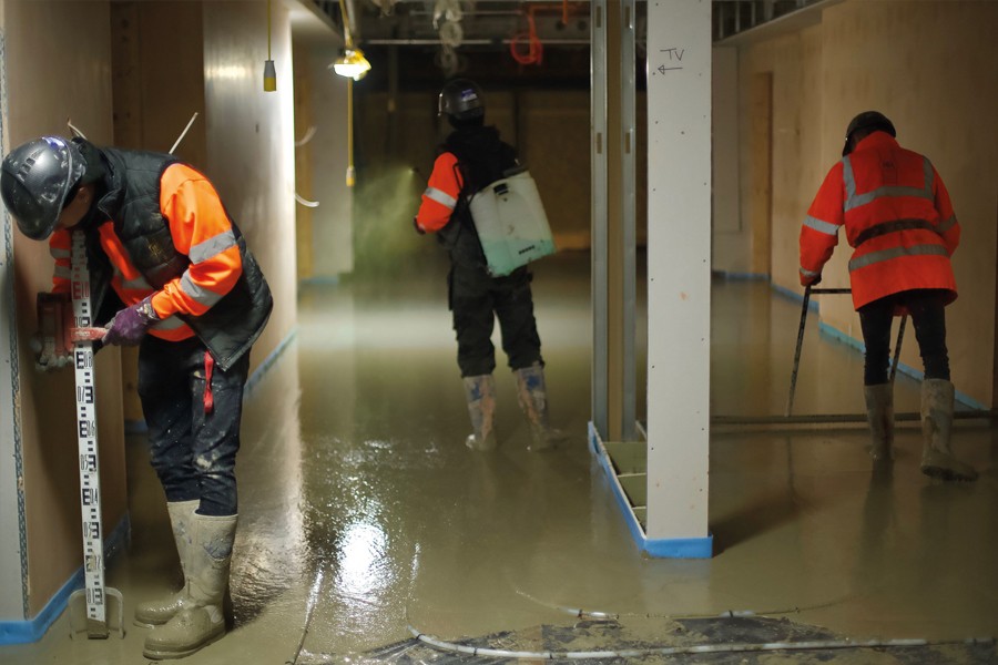‘Available in three different compressive strength formulations, it can be laid bonded, unbonded or as a floating screed and offers a lower thickness profile when compared to standard screed build ups, while its unique formulation allows the system to be trafficked in as little as 24 hours, depending onsite conditions.’