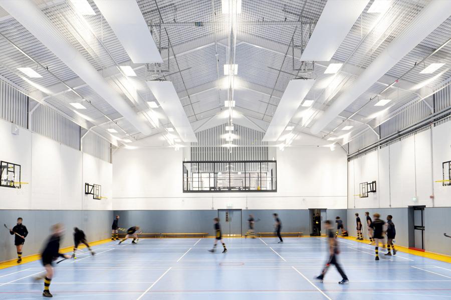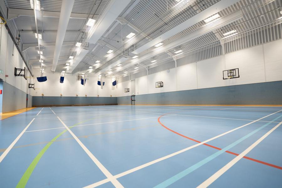 surface and a surface which could cope with ad-hoc school activities such as assemblies, prizegivings and summer/leavers balls. Therefore, the floor had to be resilient, take the point loading of a high heel or a chair and not dent or deform in any way which could affect the playing surface.