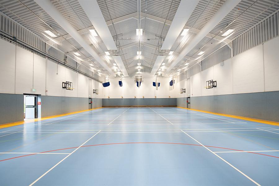 surface and a surface which could cope with ad-hoc school activities such as assemblies, prizegivings and summer/leavers balls. Therefore, the floor had to be resilient, take the point loading of a high heel or a chair and not dent or deform in any way which could affect the playing surface.