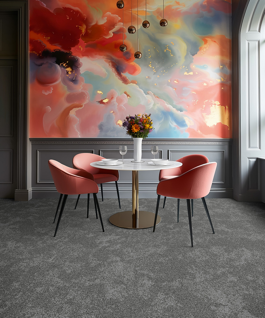 Gerflor’s Creation 70 Luxury Vinyl Tile (LVT), is perfect for high-traffic areas like hotel reception area and restaurant floors, combining realistic wood and mineral designs with a durable, slip-resistant wear layer. For quieter spaces, Creation 55 Zen provides sound-absorbing properties, ideal for guest rooms and wellness areas, creating a serene atmosphere for a restful guest experience.