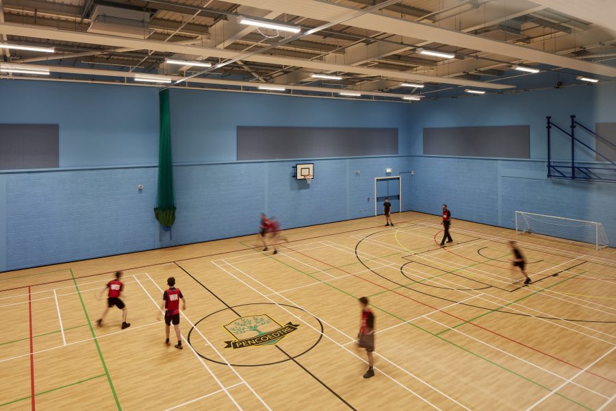 Pencoedtre High School is a large new build high school in Barry, Wales. When this busy school required a brand-new world class flooring surface for its main indoor sports hall, they simply wanted only the best! HLM Architects would specify 700m2 of Taraflex® vinyl sports flooring in ‘Maple’, from international flooring specialists Gerflor.
