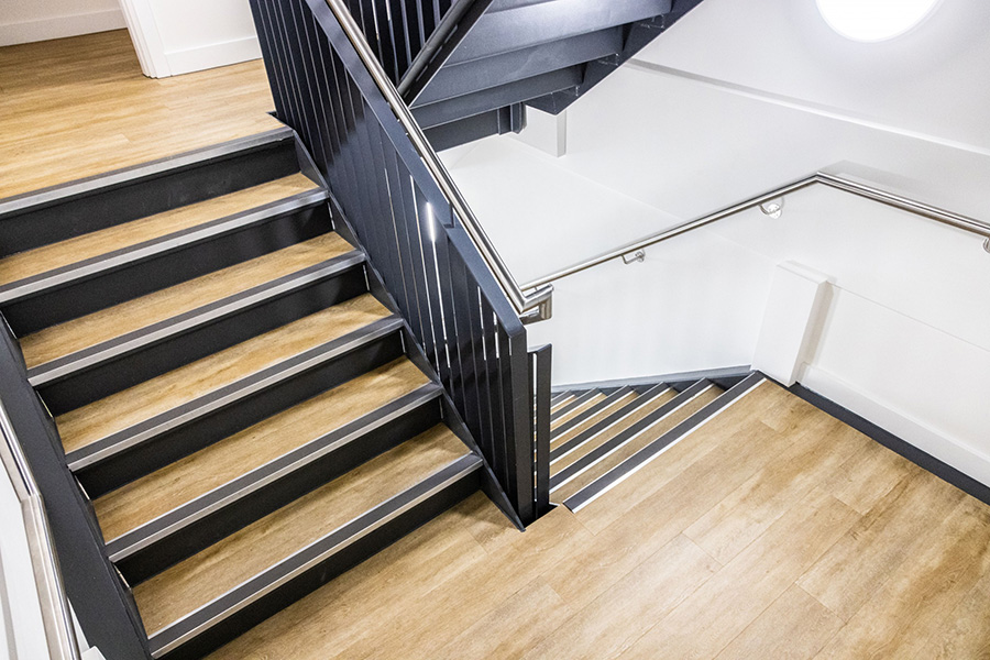 The Gerflor Specification Sales Manager at the time of the installation, Chris Pursey said, “Rud Sawers Architects initially specified Creation 55 LVT for the reception and stairways but approached Gerflor to discuss other areas within the project.”