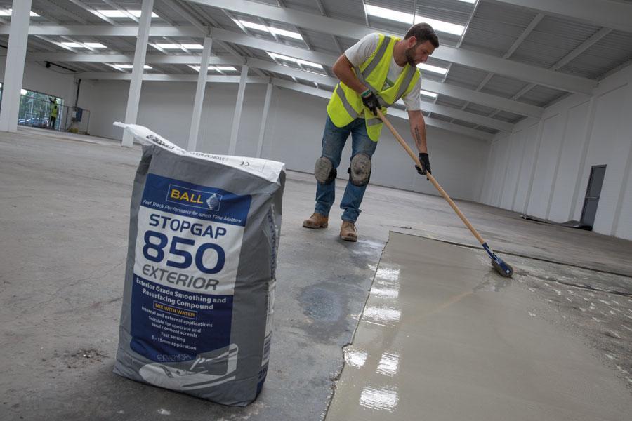 For external applications or for situations that may nominally be inside but still subject to external weather conditions, a purpose-designed exterior grade levelling compound is required. Stopgap 850 Exterior, for example, can be used in light to medium duty areas and once cured is unaffected by rain or frost. If required, it can be finished with a suitable non-slip coating or it can be left as a standalone exterior wear surface.