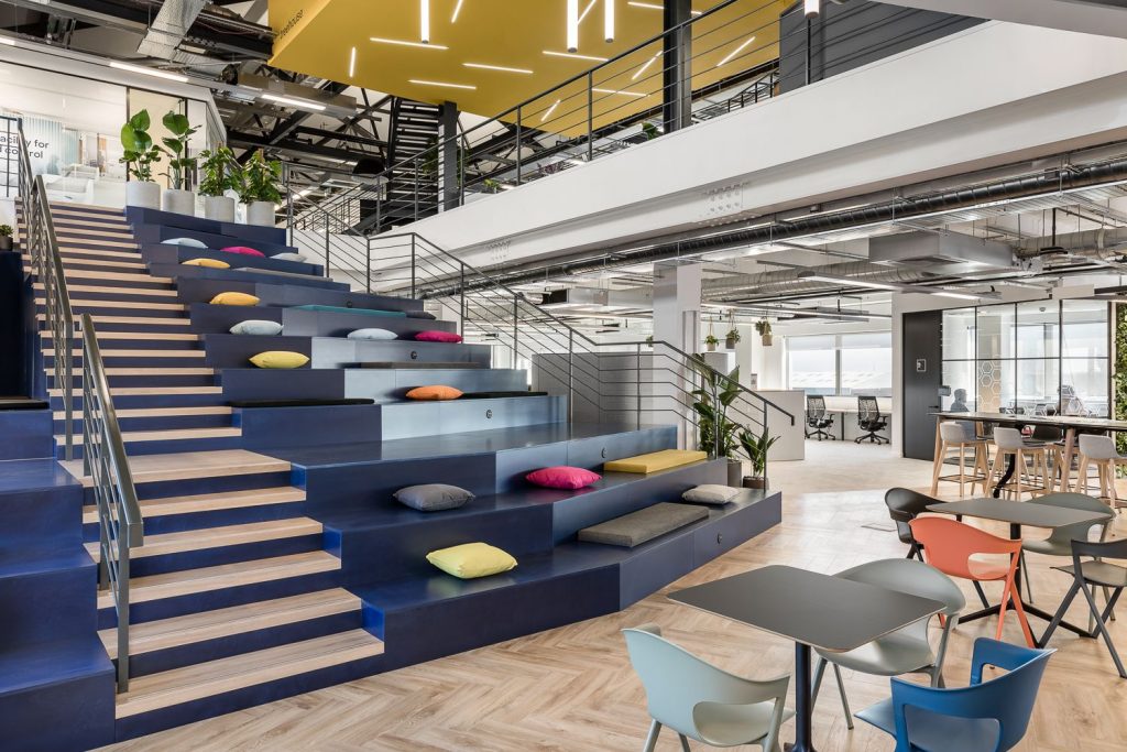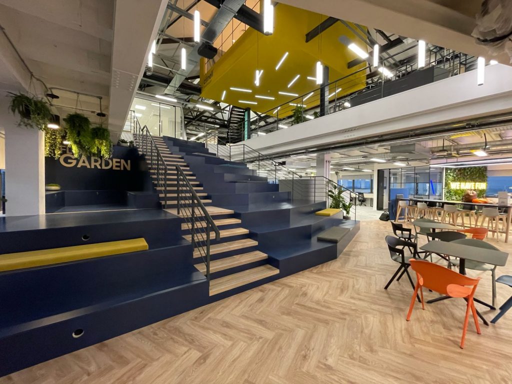 The answer saw a design inspired by bright and bold colours with an open space to encourage collaboration. At the heart of the scheme is a flooring layout to support the zoning of the space, using IVC Commercial’s Studio Moods and Moduleo 55 Luxury Vinyl Tiles to ground the interior in nature and to add a calming and restful influence.