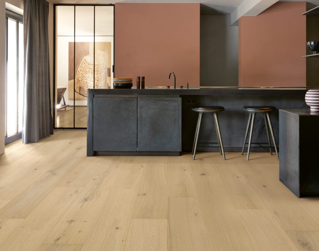 Cascada, Cala and Amato wood flooring collections are all waterproof and feature Quick-Step’s Wood for Life technology that makes them easy to live with. Wood for Life repels dirt and spills and avoids the build-up of dirt in the grain and joints that can cause blackness over time. With these ranges, homes can boast the natural beauty of wood with the practicality usually associated with synthetic floors.