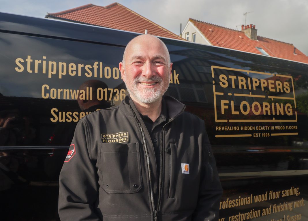 The world was a different place a quarter of a century ago, and while nobody would have blinked at the name in 1997, these days some might baulk at its use. Andrew smiles and without pausing says, ‘There’s no play on words, it’s just what we do. Our strapline is ‘revealing hidden beauty in wood floors’. We strip, sand and restore floors and yes, I get a few comments, but its normally from people walking past the vans not from clients.’