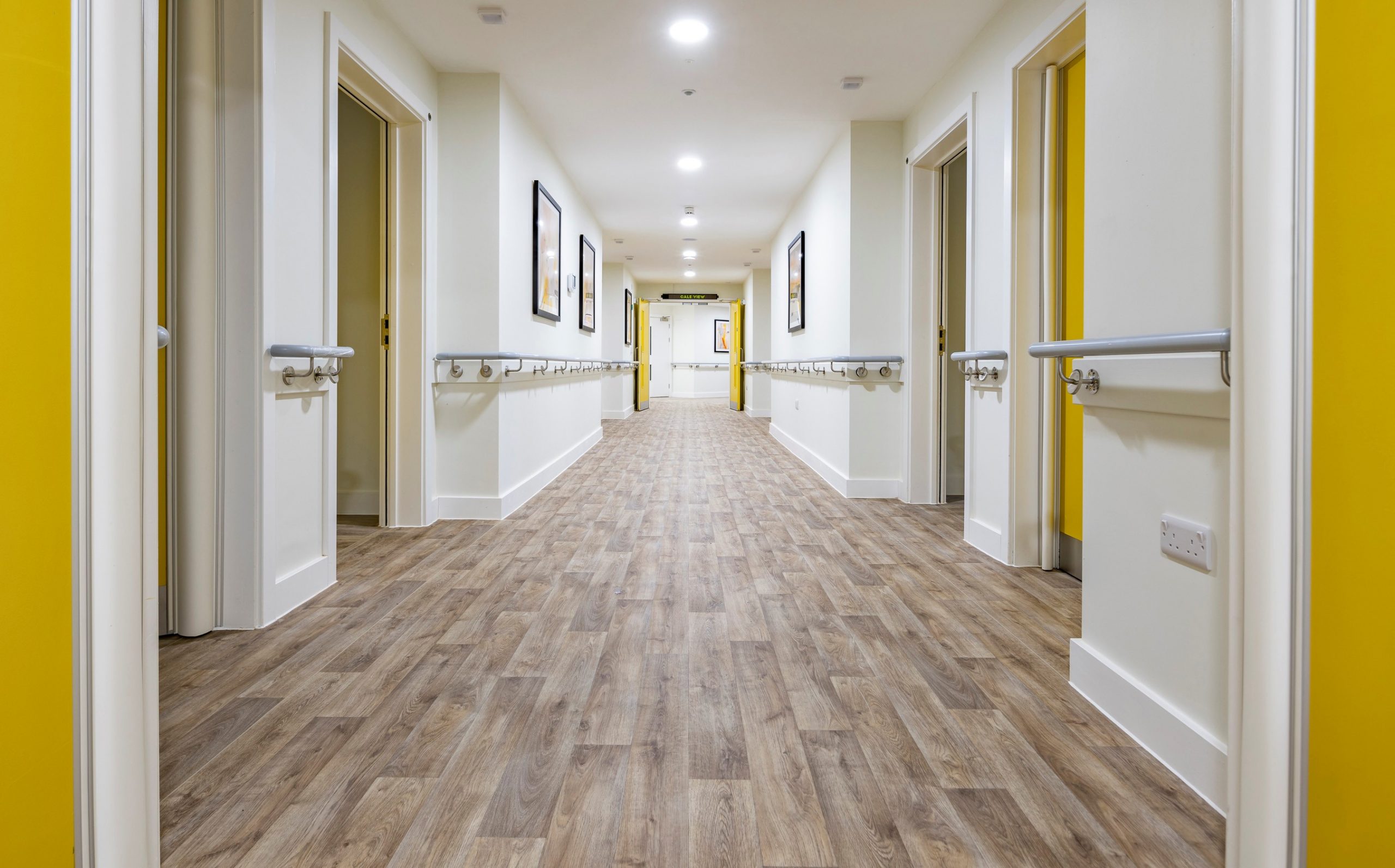 IVC Commercial makes heterogeneous sheet vinyl floors for social care establishments and one of its most recent installations in the sector included some 3,000m2 of its Iperform 70 floors in bedrooms, corridors, receptions and communal areas of Wincanton’s Cale View care home.