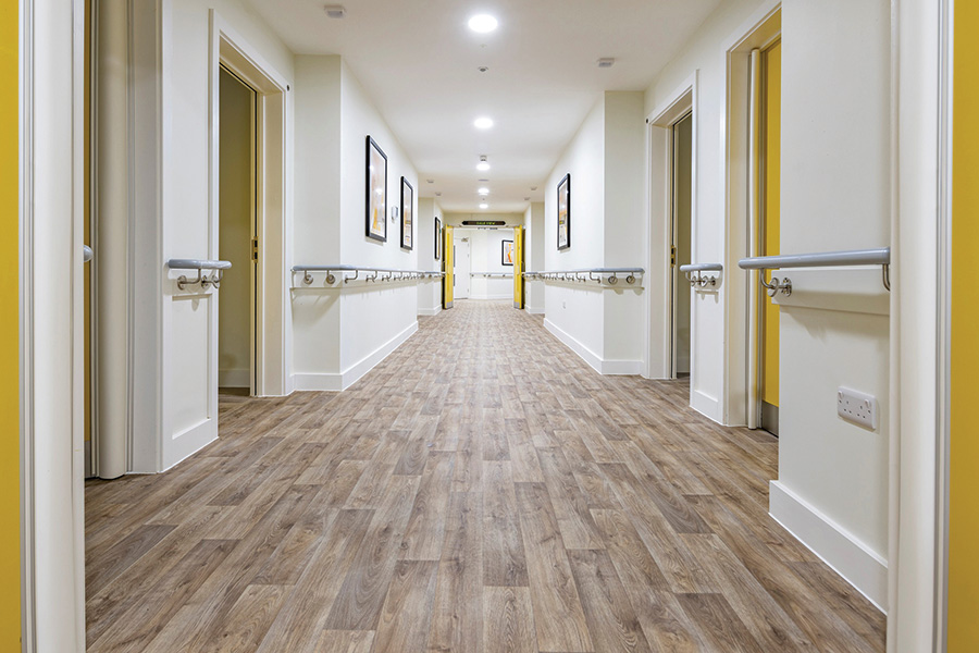 IVC Commercial makes heterogeneous sheet vinyl floors for social care establishments and one of its most recent installations in the sector included some 3,000sq m of its Iperform 70 floors in bedrooms, corridors, receptions and communal areas of Wincanton’s Cale View care home.