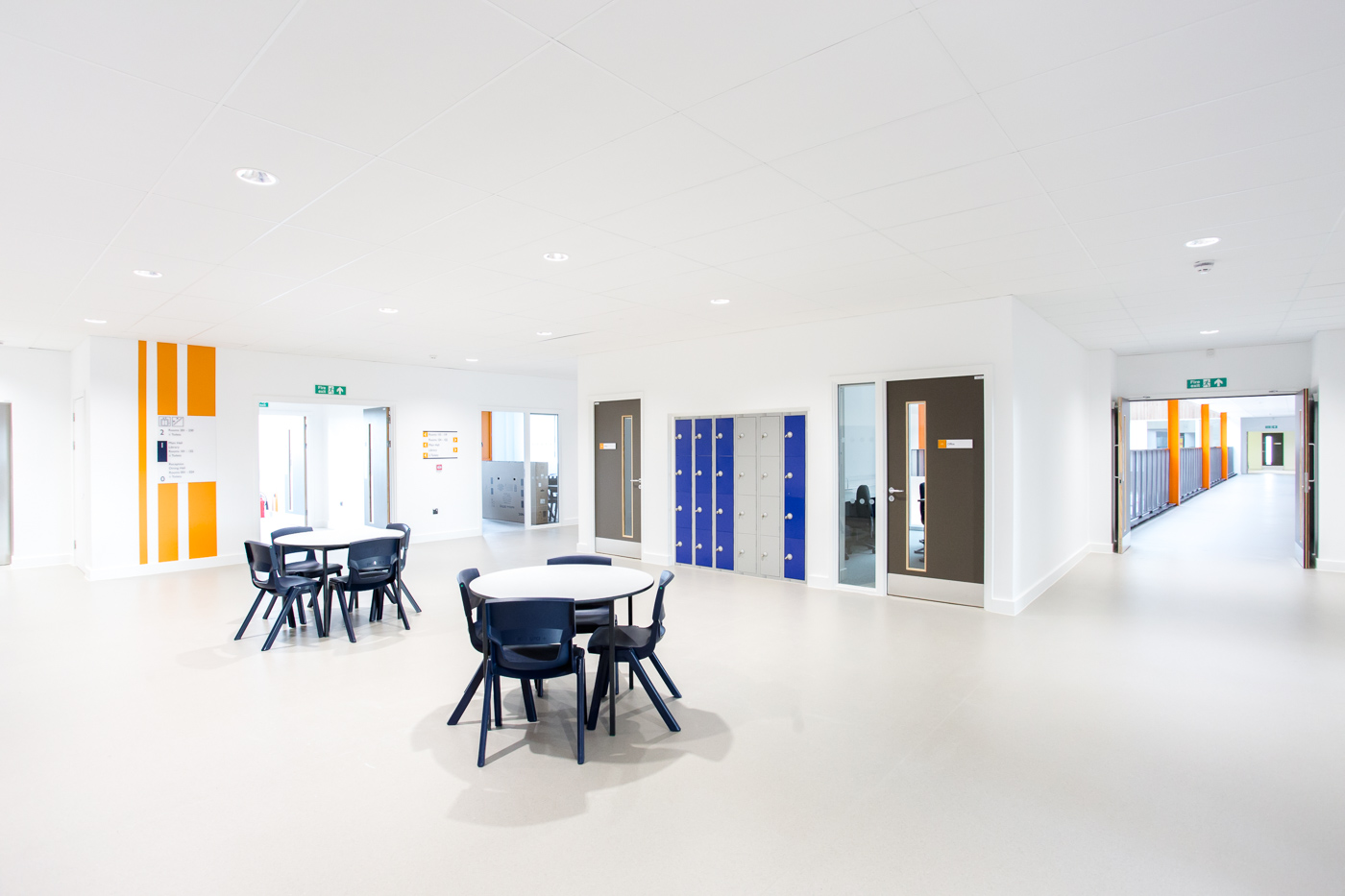 Winterstoke Hundred Academy is a coeducational secondary school and sixth form located in Weston-super-Mare. The new building, at Locking Parklands, provides an investment in the future of the region, increasing intake by 900 school places across years 7 to 11, with the sixth form provision accommodated in the original building. It was designed to achieve a BREEAM ‘excellent’ rating and protected local plants and wildlife through a biodiversity net gain of 10%. It includes solar panels, which will power the classrooms and bike storage areas to encourage more sustainable travel, and the school aims for carbon neutrality by 2030. Forbo designs specified included Sphera Element homogeneous vinyl flooring, Sphera SD anti-static vinyl flooring, Surestep Original safety flooring and Safestep R12 safety flooring.