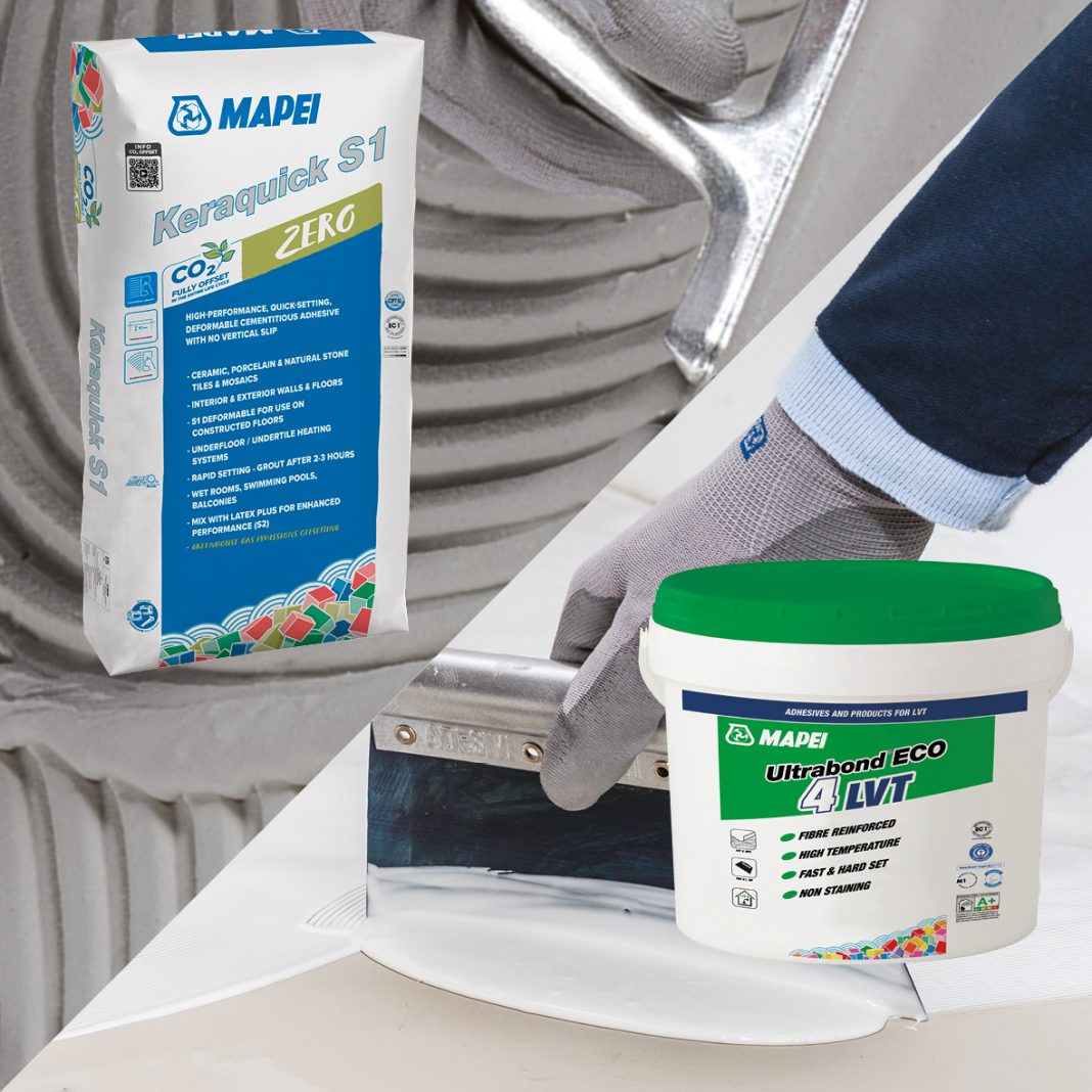 ‘Best-selling fast-track adhesive, Keraquick S1 Zero is a popular choice for all types of ceramic, porcelain and dimensionally-stable natural stone tiles and mosaics. The latest Mapei UK product to join the Zero line of carbon offset products, the adhesive also benefits from a very low VOC EMICODE: EC1 Plus certified formulation.’