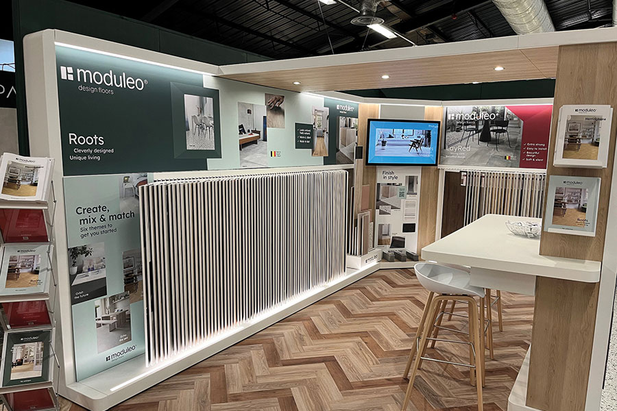 MODULEO came to September’s The Flooring Show with its shop-in-shop concept and a new herringbone format in its Roots collection.