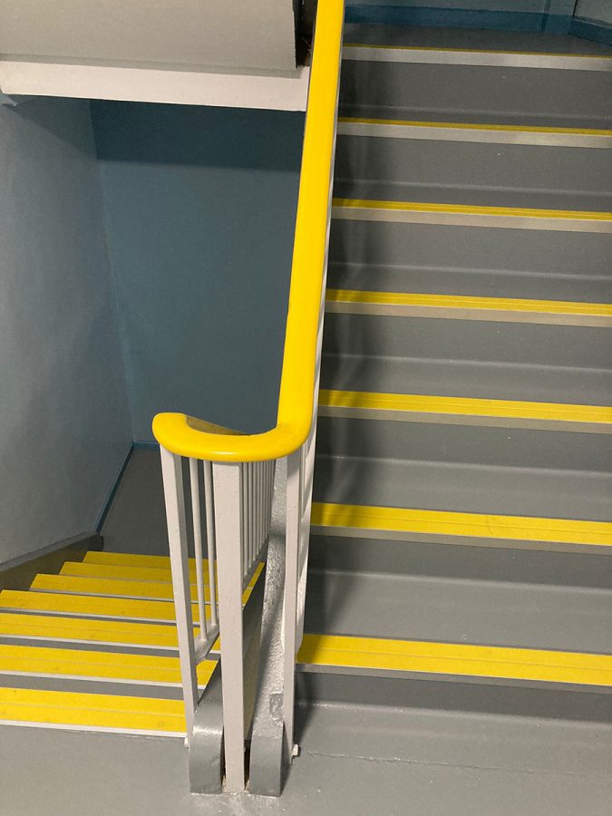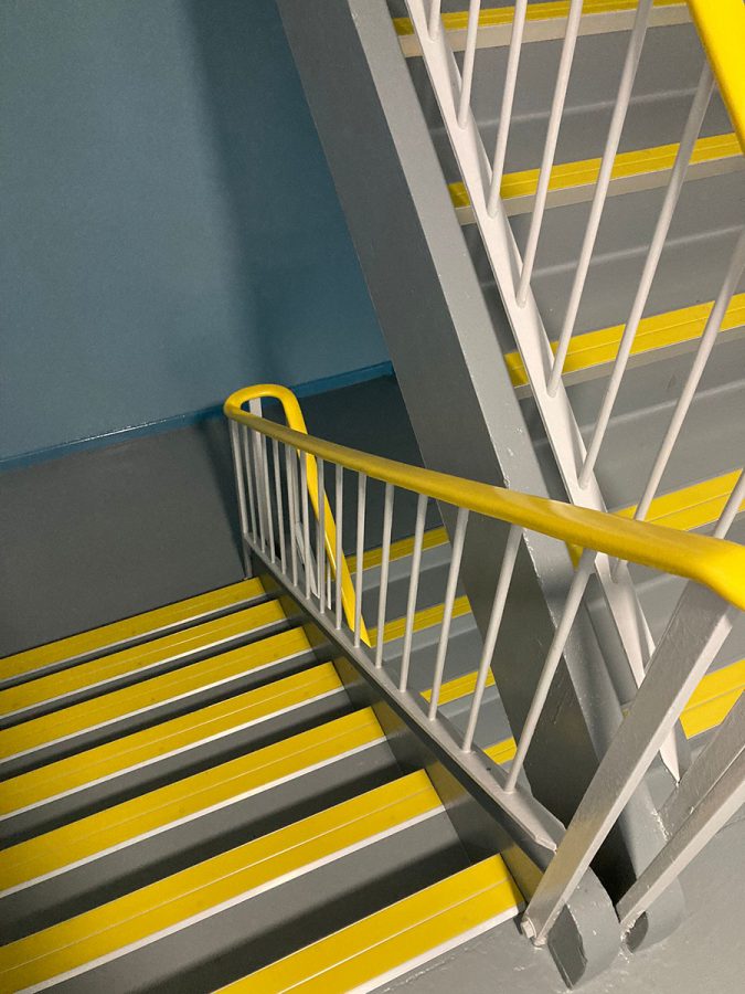 Stair nosings had previously been fitted but had been in situ for a number of years and were being replaced to refresh the visibility of the step edge and revitalise the anti-slip performance of the stair nosings.