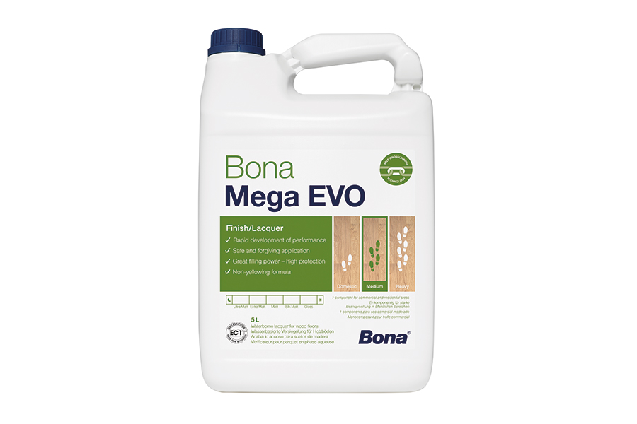 Says Bona: ‘Bona Mega EVO is the next generation that incorporates a completely new and significantly faster technology that is unique to Bona. The self-crosslinking occurs entirely within the lacquer without the use of any external components, making it a next generation coating.