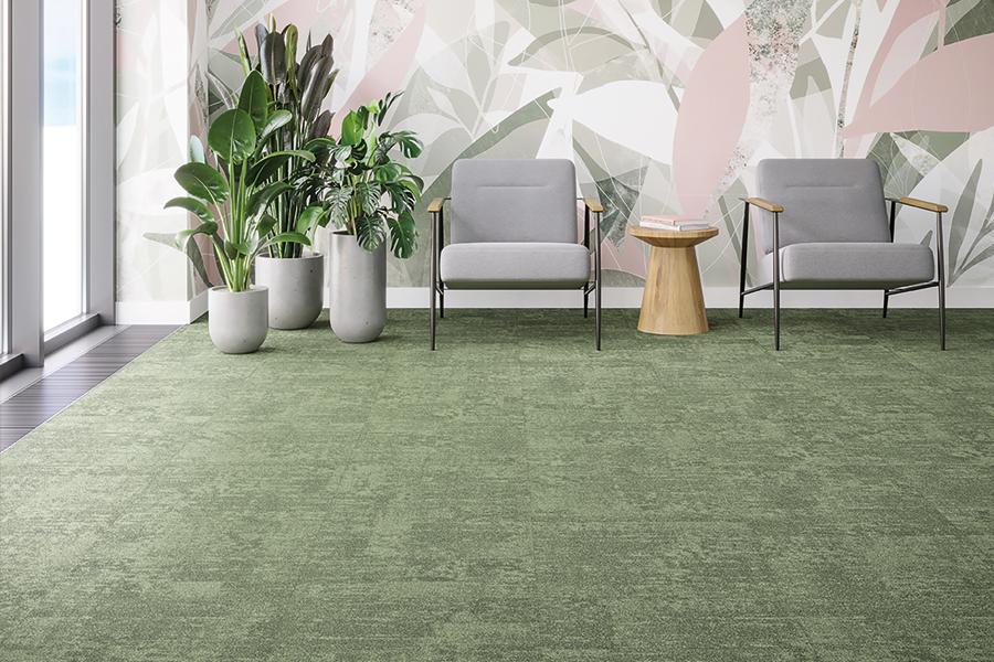 Concludes Forbo: ‘What’s more, with a 100% solution dyed yarn in a multi-height loop pile construction, Tessera Infused combines comfort with functionality. The range also contains 60% recycled content by weight and is available in 50cm x 50cm tile format, and with SOFTbac secondary backing.’
