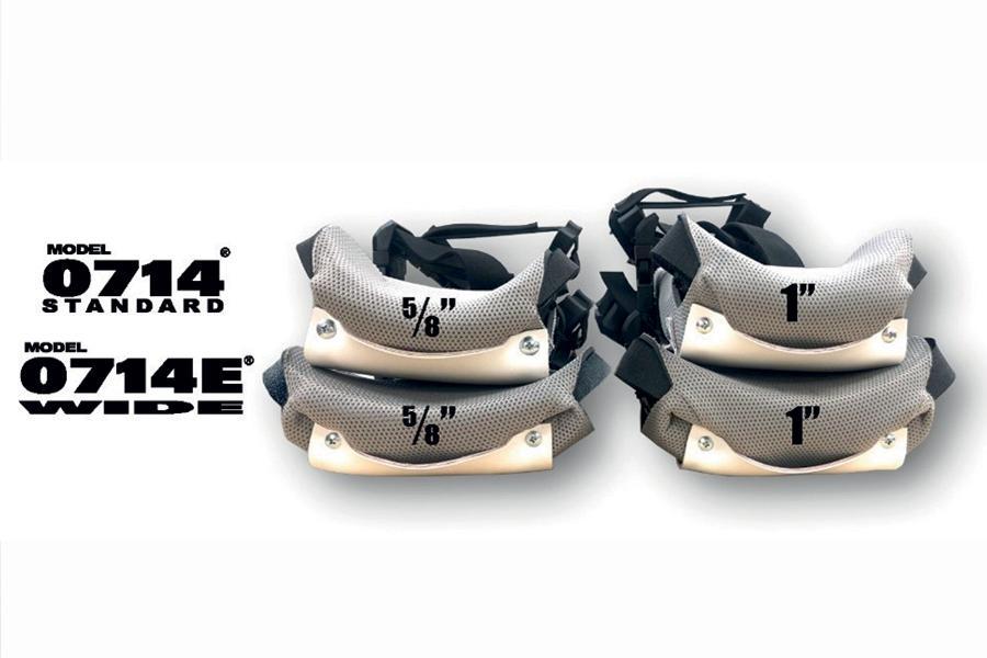 3 Measure around the widest part of your calf muscle (Figure 1: C) with work trousers on. The kneepad model (Figure 2: 0714 Standard vs. 0714E Wide) is related to your knee width and determined by the C measurement. A measurement of 17.5in or larger defaults to a Model 0714E Wide. In some rare cases, a person may have a wider calf, but narrow knee width and will require our Standard model. This is why it’s important to try on your pads to ensure you have the correct size and width before putting them to work.