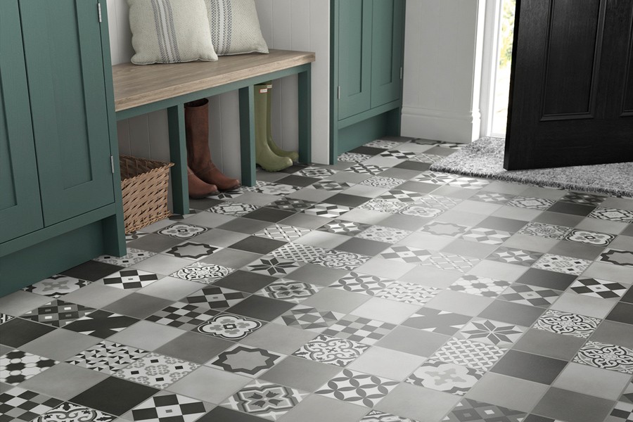 IDS says that the product is ideal for use in hallways, kitchens, bathrooms and conservatories in place of real tiles because ‘the authentic designs’ feature a multitude of patterns interspersed with solid, plain colours.