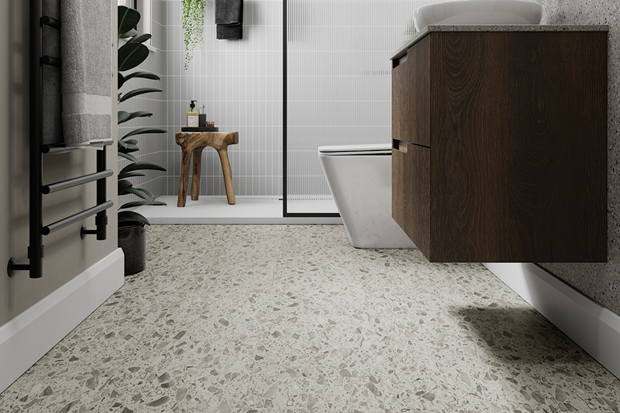 Adds the company: ‘As well as the new terrazzo design, cool stone, concrete and classic-marble effects have been added to the Malmo Rigid Comfort Luxury LVT range, taking the total number of natural stone-inspired decors to nine. The collection also features Wide Plank and Narrow Plank options. All designs are 5.5mm thick and have a rigid SPC waterproof core.’