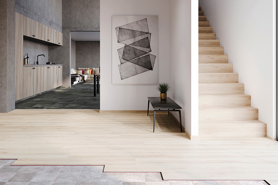 ‘The three-in-one profile can be used for expansion, end and adaptor duties, while skirting and scotia are available in pattern matched and paintable versions. The direct-print technology ensures an endless design on pattern matched skirtings so that there is no obvious join from one to the next.’