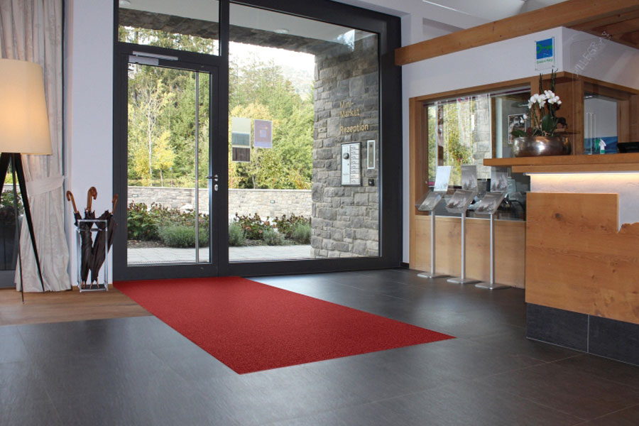 The Stelvio is a soft, absorbent mat with a relatively high frisé pile for a welcoming reception in a property. An entrance mat that keeps the hotels, high-end retail outlets and representative offices clean and safe. A beautiful red carpet is also available in the chic, classic colour palette.