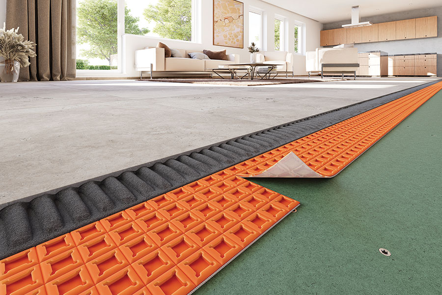 Adds the company, ‘The 4mm electric cables or water pipes push-fit into the studded, fleece backed membrane which acts as both an insulating carrier and an uncoupling layer to help distribute stresses within the build-up: reducing the risk of tiles cracking. The two Schlüter-Systems UFH options also offer sound transmission reduction of up to 13 dB.