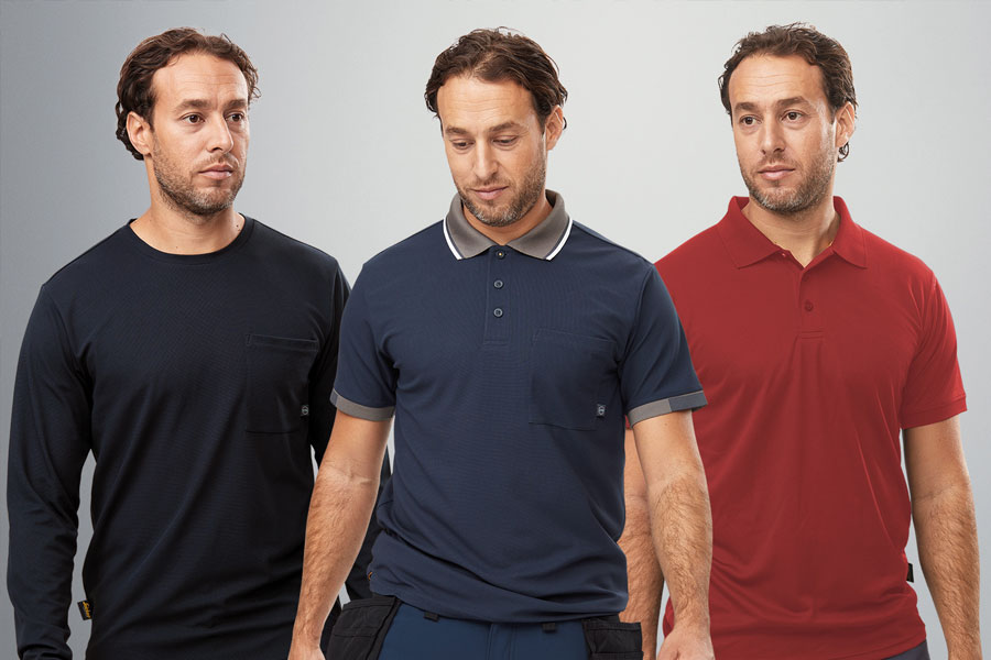 ‘The new AllroundWork styles are made from waffle-structured 37.5deg fabric for optimal ventilation, cooling, and moisture transport to keep you feeling fresh for longer,’ says the company. ‘And, with the aim of being at the forefront of sustainability in workwear, the new lightweight polo and T-shirts are made of 100% recycled polyester with a biobased, anti-odour finish with a smooth texture and efficient moisture transport for great working comfort.