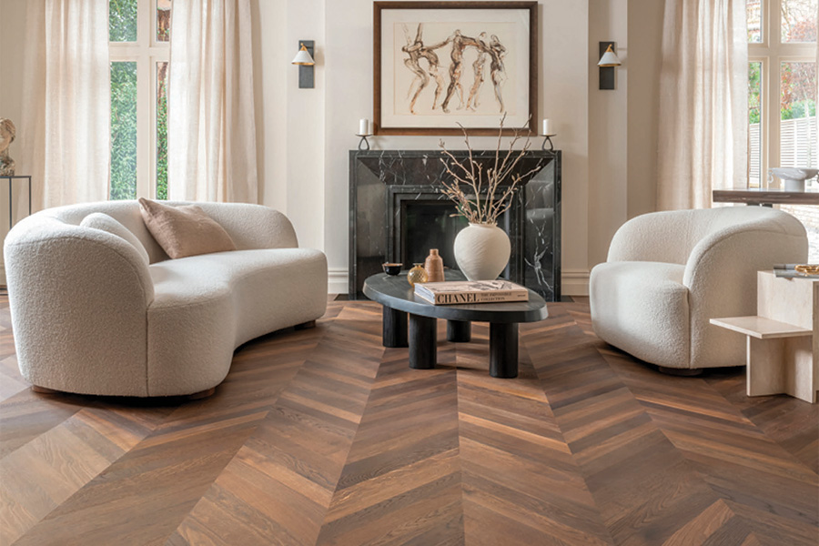 The company continues: ‘Residence is a collection of 10 elegant and refined floors that embody contemporary luxury, suited to chic, modern interiors. There are three designs to choose from, plank, herringbone and chevron which work as a multi format system with interchangeable colours and designs to create sophisticated laying patterns.