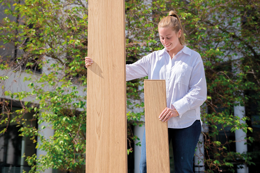 ‘By using this technology, 10 times more flooring can be produced from each tree, supporting the company’s sustainability proposition. All waste is also recycled to create more wood powder that’s reused in the Woodura process.’