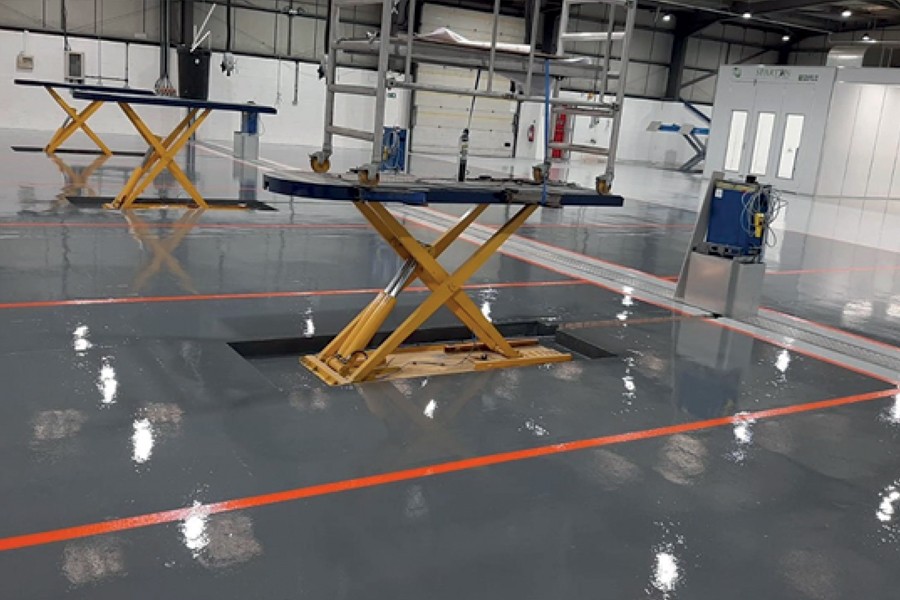 ACC Flooring was asked by a new client to install a high-build epoxy coating to its new automotive workshop in Coventry. The 1,215sq m floor area was shotblast and diamond edge ground to remove laitance from the concrete substrate.