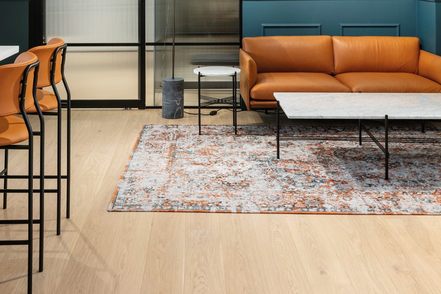 The company turned to Louis de Poortere’s Antiquarian Bakhtiari rug to add a layer of comfort and warmth in the relaxed seating area within the communal area. Working on top of a wood effect vinyl floor, the rug features in the Galata pattern.