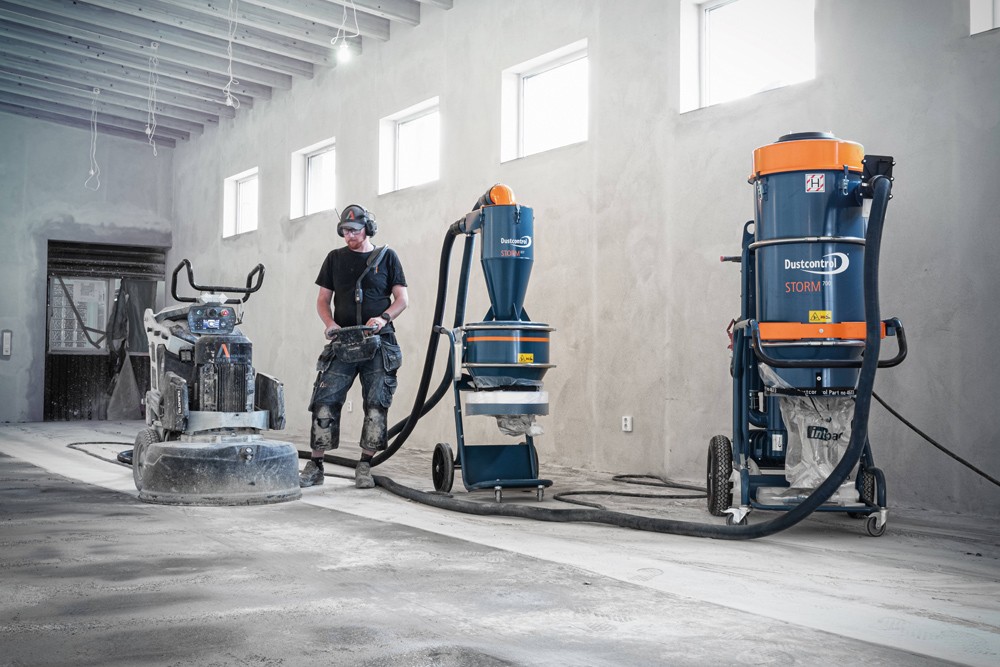 FLOOR grinding represents one of the most challenging applications for source extraction, says James Miller, director at Dustcontrol UK. The grinding discs used on floor-grinders are highly abrasive and generate large quantities of fine dust. In fact, up to 100 litres of dust can be generated every hour, which can cause serious damage to the health of those who inhale the fine particles.