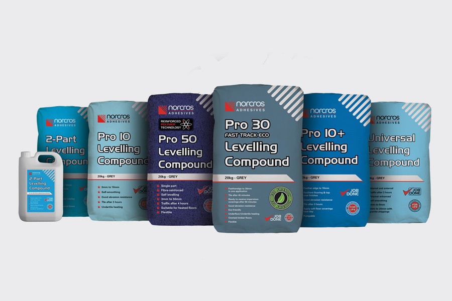 Says the company: ‘Norcros Pro 30 Fast Track Levelling Compound is one of the most environmentally friendly products in this market, containing recycled crushed glass, which replaces quarried sand. It’s a flexible, single-part leveller which is suitable for use from featheredge to 30mm in a single application, without the need for additional aggregate. It’s ready to tile after just 45 minutes, and can receive impervious floorcoverings after 90 minutes, allowing early foot traffic and fast-track tile fixing.’