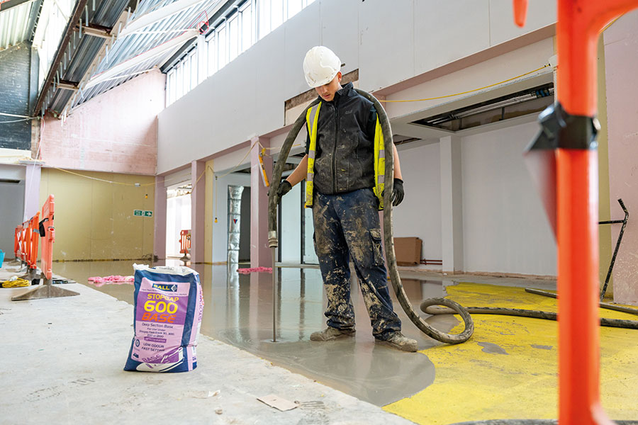 Contractors therefore applied Stopgap 600 deep section compound in these areas. The product is suitable for applications at thicknesses between 5-50mm prior to being capped with a suitable F Ball smoothing compound.