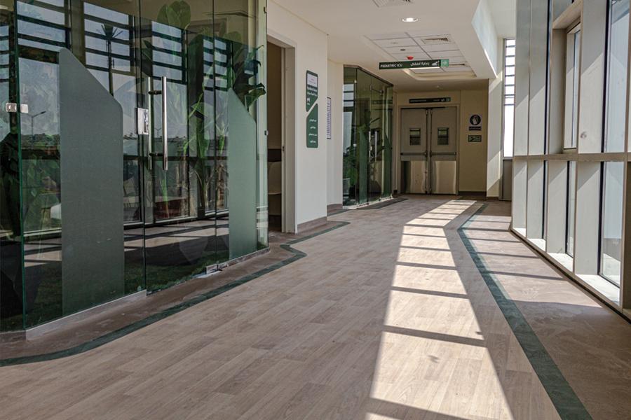 Flooring contractors from Cairo-based Tradelink installed floorcoverings throughout the newly built hospital, including in inpatient rooms, intensive care units, nurse stations, blood donation areas, emergency department, administration centre and corridors, a total area of more than 5,500sq m.