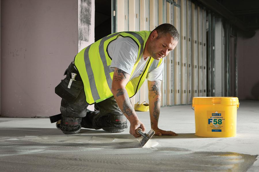 The company continues: ‘Options are also available where contractors face considerable time pressures and a moisture-resistant or temperature-tolerant adhesive isn’t required. F Ball has recently launched a fast-track, pressure-sensitive adhesive for LVTs, Styccobond F58 PLUS.
