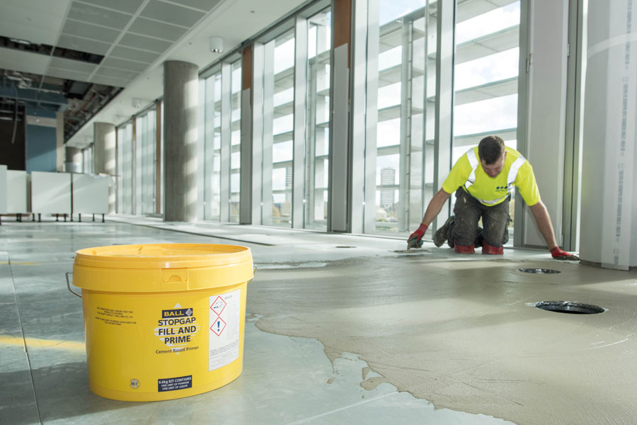Says F Ball & Co: ‘To save valuable time and expense for the contractor, cement-based primers, such as F Ball & Co’s Stopgap Fill and Prime, are available that are designed specifically for use over raised access panels and fill the gaps at the joints between the panels whilst priming the subfloor. Stopgap Fill and Prime is a two-component, fast drying flexible cement-based primer that is suitable for use over raised access panels.